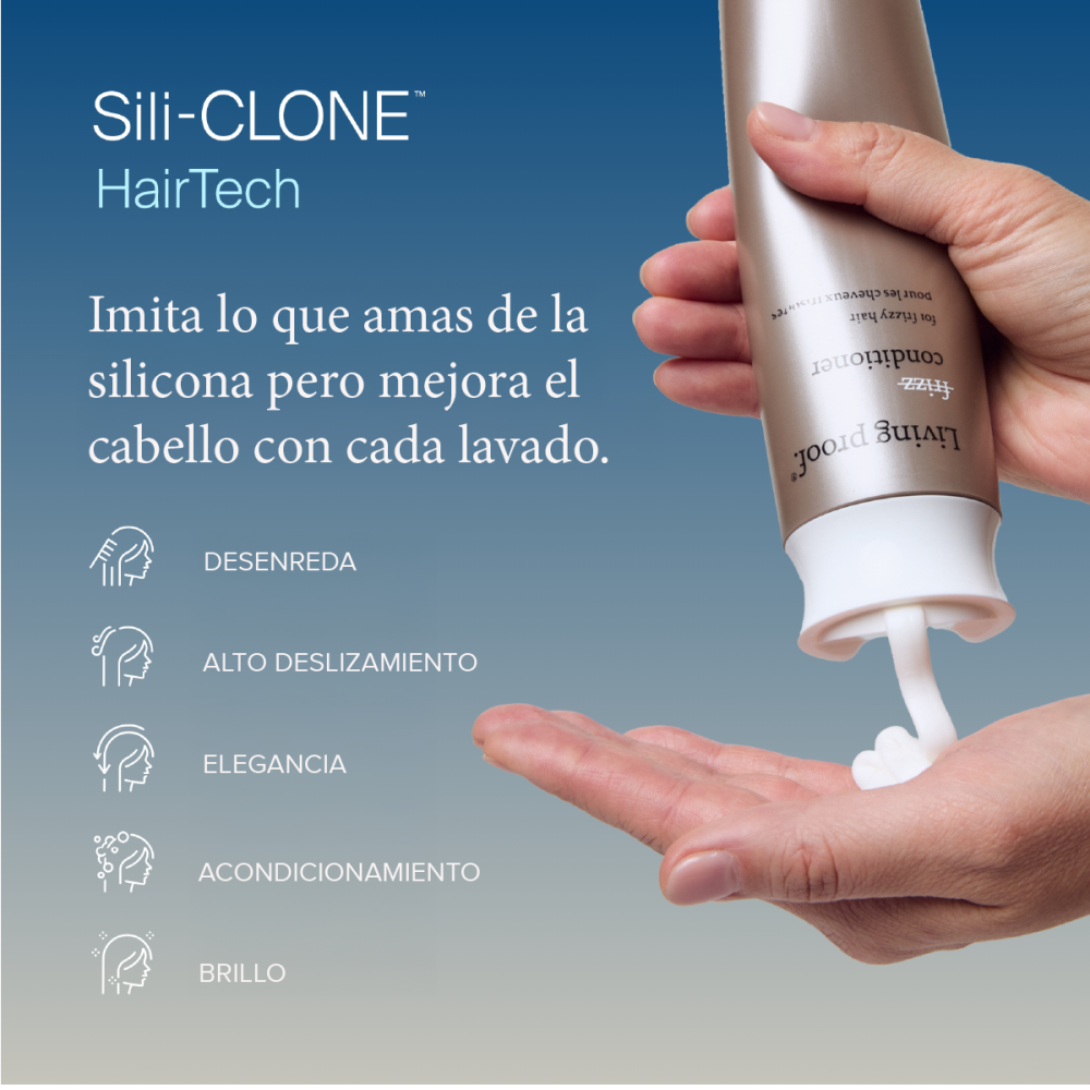 Consigue todo lo que te encanta de las siliconas (brillo, suavidad, facilidad para desenredar), pero con una mejora real en la textura y calidad del cabello gracias a la innovadora tecnología Sili-CLONE™ HairTech.
